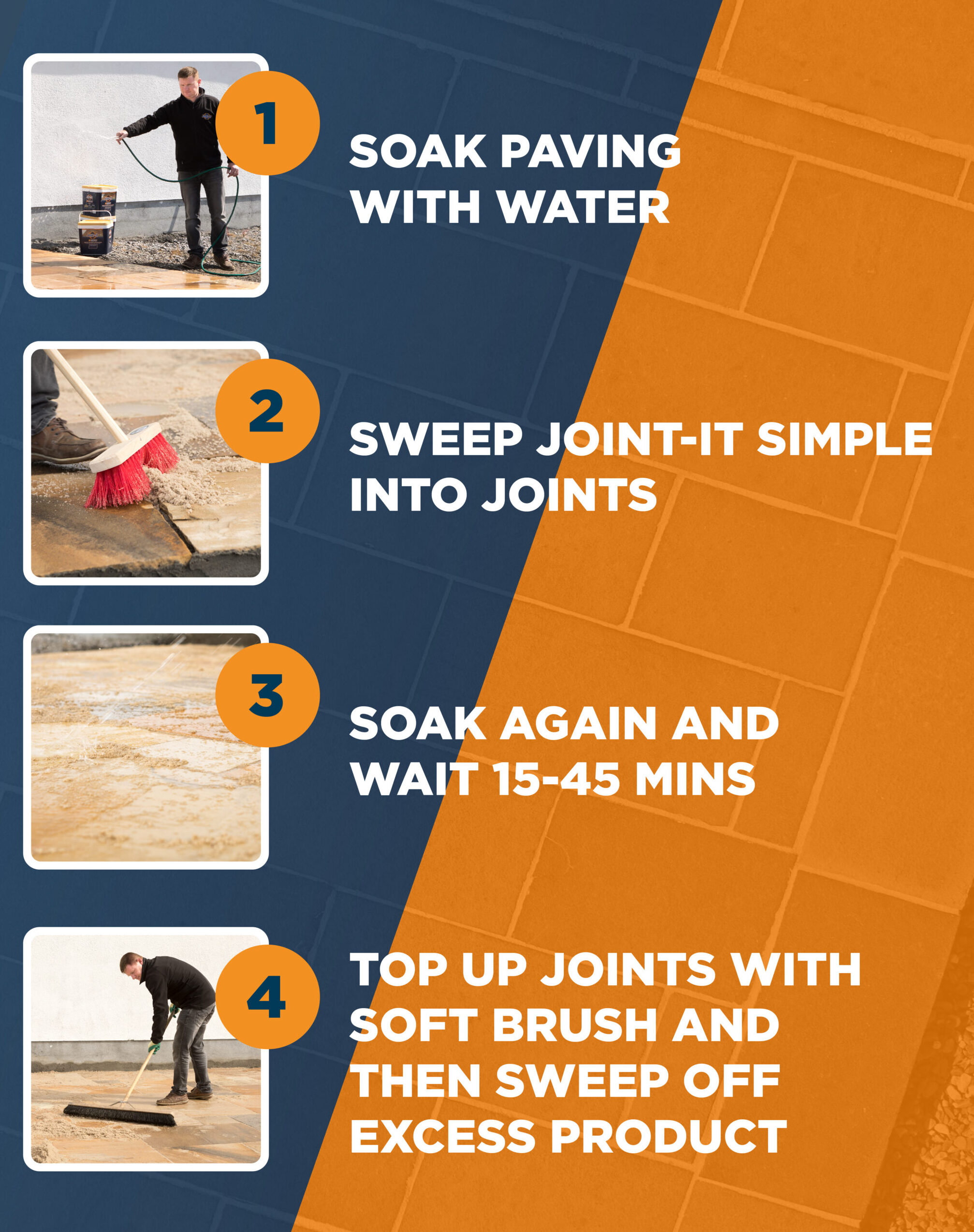 Tam, gdzie inne fugi i zaprawy mogą pękać i rozluźniać się, powodując wzrost chwastów, Joint-It Simple twardnieje.